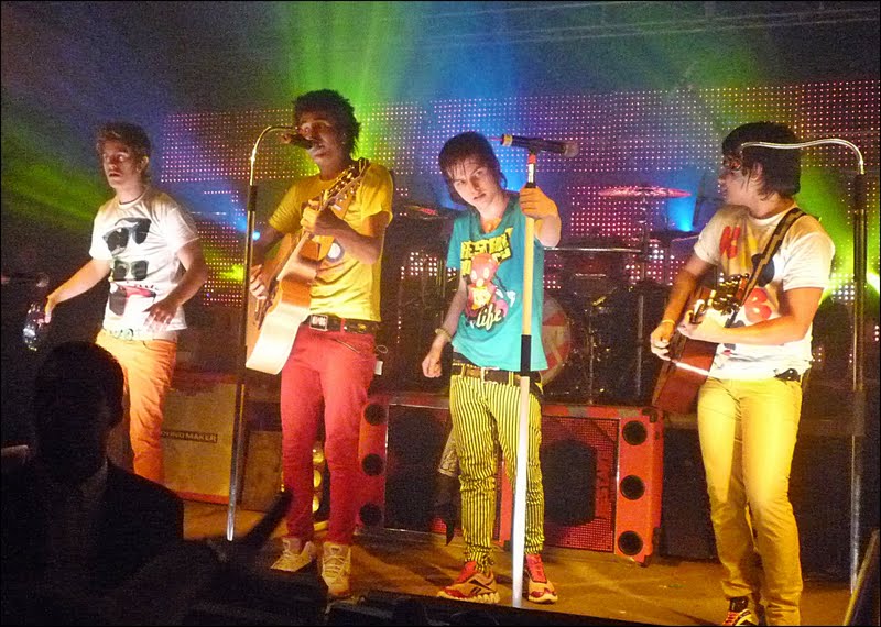 Quando deu 9:00 o DJ parou de tocar. Os seguranças se posicionaram para nenhuma fã pular a grade e invadir o palco (bem qe eu qeria...). Todo mundo começou a gritar, as luzer se apagarm e soltaram fumaça. O Thomas entrou - gritos - depois o Koba - gritos - depois o Pelu - gritos - depois o Pe lanza - mais gritos - . E Então minhas pernas pararam de doer e minha fome se foi. Nada mais importava a não ser eu, a musica e els :) .